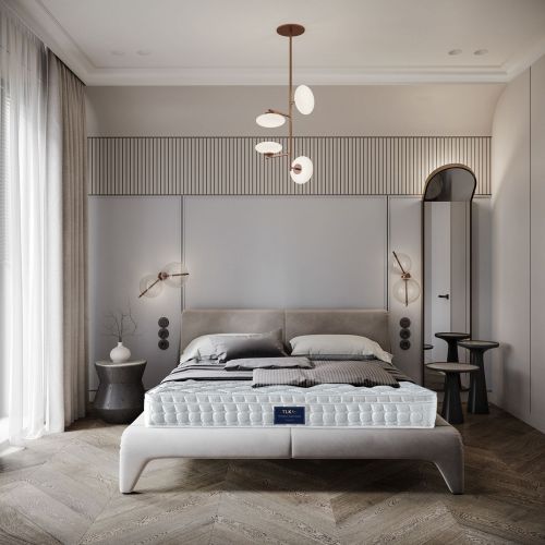 床垫填充物则用了凝胶记忆棉、进口天然乳胶、活氧棉、羊绒棉等,选择多样且高端舒适,赋予床垫贴合包裹的“魔力”睡感,可以应身体各部分不同压力而提供最合理的支撑,确保睡眠时脊椎保持自然的生理曲线,有效延长深度睡眠。