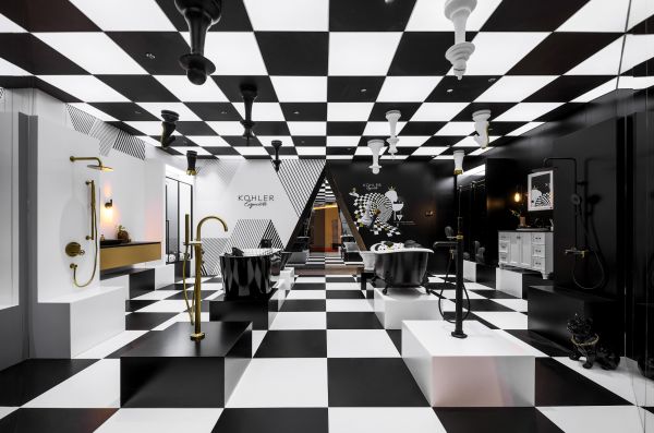 科勒Kohler厨房衣柜亮相,黑白系展台风格中的一抹彩色