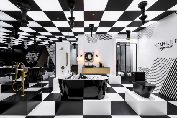 在设计领域,色彩的展现历来是高深的艺术,亦如简单却极致的黑色、白色与金色。本次科勒精选的展台运用黑与白对立的视觉冲突,表达出科勒对敢拓新界的坚持与立场,制造了强烈的色调碰撞。空间上则用极致的内外反差,展现出科勒别具一格的产品个性。外部严谨有张力,内部亲和自然,参观者随着不同情境的切换,深刻感知科勒产品的叙事能力。