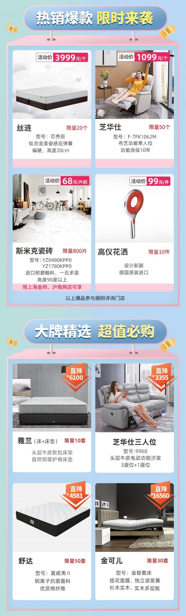 舒达床垫、欧派、芝华仕、金可儿、恒洁、德国高仪、斯米克、丝涟、TOTO等人气品牌联袂派送福利!10%焕新补贴(最高5000元),1元变1万的万倍膨胀,满额抽奖送好礼!