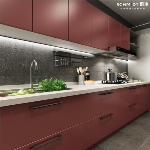 法国司米拉维尔Pro,通过静电喷粉烤漆工艺重新演绎、辅以现代简约设计的极简奢华艺术橱柜空间,粉曜登场,与您净享健康新生活!