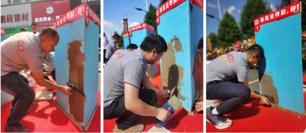 本次海选赛考核项目是:贴砖。甭以为很简单,要贴好四块小砖,涉及的技术要点可不少:加料顺序、搅拌方式、浆料的粘稠度等,步骤一个接一个,可不能出错!
