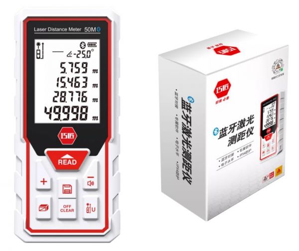 巧匠蓝牙激光测距仪用于距离、面积、体积、勾股、角度等5种测量,并可通过蓝牙对接专属小程序完成数据传输,实现测距、计算面积和美缝剂用量的计算,提升美缝交付服务专业度。