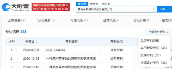 据悉,截至今年5月底,梦百合共持有专利总数106项,其中外观设计专利46项,实用新型专利30项,发明专利30项。从数据来看,梦百合所申请专利不太多,但是相对比较均衡,后期还有极大的发展空间。