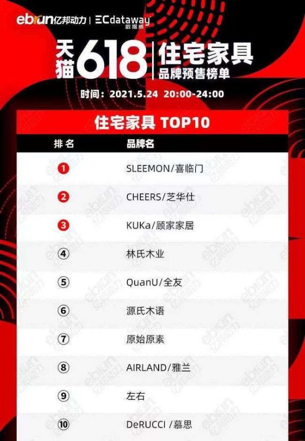 以喜临门为例,天猫618预售开启仅1小时,喜临门床垫就凭借预定数量近2万件,直冲十大爆款品牌榜单。与此同时,在24日天猫开启预售通道的当天,喜临门天猫官方旗舰店预售销量行业第一,占据床垫类目50%以上的份额。相比之下,慕思还能排第10名,梦百合则在榜单上没踪影。