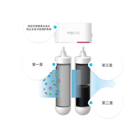 碧然德mypure U5橱下净水器共有两颗滤芯,是三阶段精密过滤的。其中: