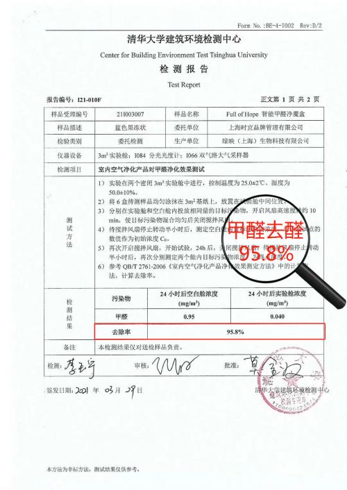 家清集团时宜以消费者的需求为核心,研制出适合更中国家庭的Full Of Hope系列产品。时宜凭借优秀的自主研发能力不断优化原有配方,在产品中融入行业前沿的第四代除醛技术——植物萃取的雪松除醛因子,主动抓取空气中的甲醛和大分子污染物,分解转化为水和二氧化碳,经过广微测、清华大学建筑环境检测中心、国家纳米实验室机构多方认证,使得产品24小时除醛率达95.8%。Full of Hope两款拳头除醛产品除甲醛果冻和除甲醛喷雾一经上市就成为爆款,获得了月销千万、口碑爆棚的喜人成绩。