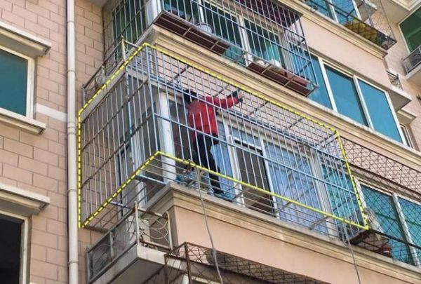 头次见,防盗窗向下延伸1m,用来放洗衣机,楼下邻居:太危险拆掉