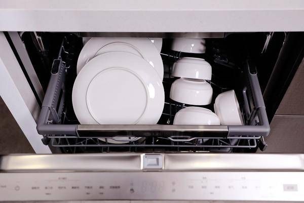 LG洗碗机,内部三层碗碟架设计,多功能搁置架可以放置筷子勺子,上碗篮主要是碗和料碟之类,下碗篮则主要是锅和碟。上层碗篮可自由调节高度,空间利用合理,home party结束之后也可以轻松解决“从锅到碗”的一切污渍,真正意义上实现双手解放!
