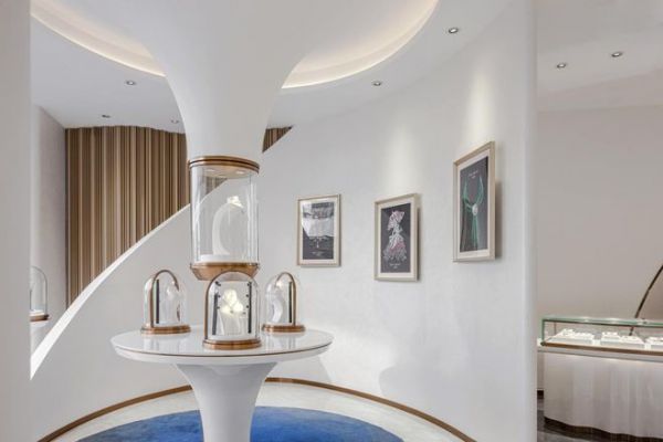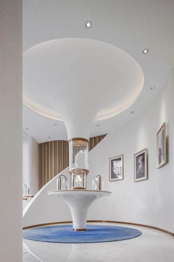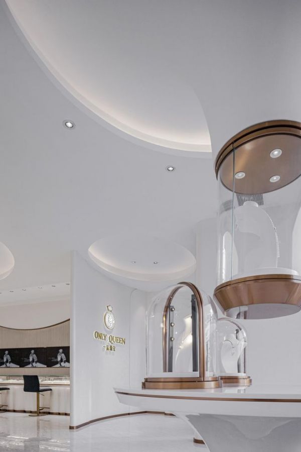 基于品牌文化的制定,在空间中,泛域·双邑团队希望通过让艺术与商业的边界的淡化,打造出一个流动变化,细腻丰富的情感空间,从而带给顾客更多维的消费体验。这次的设计中,双邑团队进行了一次新的尝试,打破常规的外立面与橱窗的结合方式,将内部展示空间艺术化与外立面建筑形成一体的视觉呈现,让内部空间和建筑互为彼此,以艺术展陈的方式造境,极具吸睛的珠宝陈列艺术装置,为顾客带来视觉冲击,并且通透的室感官,同时能引发消费者对室内空间的好奇心。