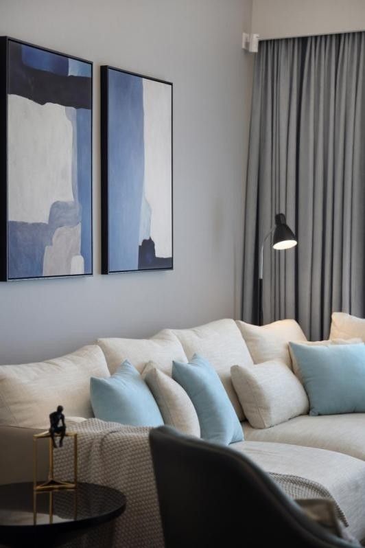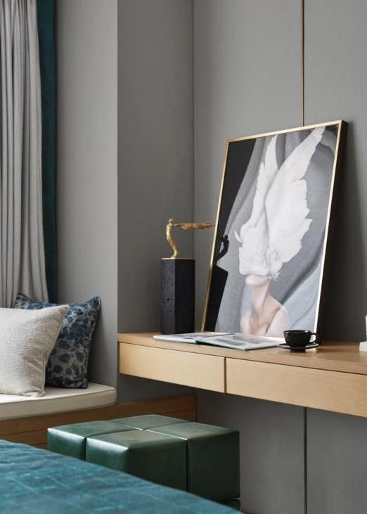 用灰色作为家装的背景,在选择其他装饰时,就可以尽情大胆一点。灰色简约的背景,搭配撞色装饰画,灰色作为低饱和的颜色,与很多颜色都能完美搭配和融合。