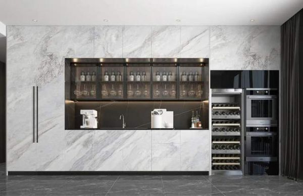 岩板作为新型的建筑材料,除了满足日常铺贴之余,还适用于不同的场景应用。如:台面装饰、吧台、家居定制等,为家装、商业空间提供整体家居解放方案。