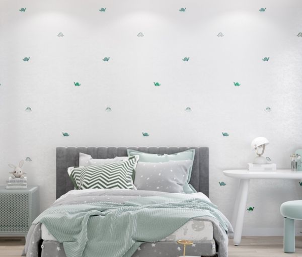 孩子们对恐龙的故事总是充满好奇心,恐龙的世界到底是怎样的呢?这款墙布满足了孩子们的好奇心。肉嘟嘟的小恐龙,身上有着美丽的花纹、迈着悠闲的步伐,在森林里自在的游走着,形成了一道亮丽的风景线,又萌又可爱。墙布采用三层高精密提花工艺:表层是涂料层,采用纳米技术,防水防污;中层是织物层,高精密刺绣织物,柔韧耐磨;底层是无纺布棉层,环保吸湿又透气,可用年限10-15年。更有多种色彩与图案形成不同搭配,给孩子创造一个梦想空间。