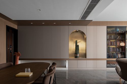 赖嘉娜本次获奖的作品结合户型基础,通过天花的饰面区分,打造一个开放式的长玄关。将原本的杂物阳台改造为中厨区,规划出独立的西厨区与大餐厅结合。钢琴的融入打破了原有过道的沉闷,造型与整体墙柜的对景相呼应。