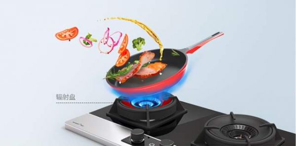 采用完全上进风、内外环前后相对引射系统、双驱双旋,让火力更集中。隔热保温结构设计,减少对外热量损失,提高辐射盘相对温度。当辐射盘温度达到500℃以上时,辐射盘开始发红,并提升对锅底的辐射,让热量分布更强更均匀。