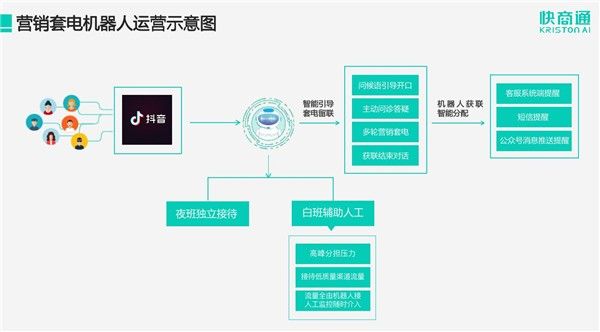 全天候在线的营销套电机器人,能替代人工客服了解客户需求、解答问题,并直接将获取的客户信息即时性地分配给销售跟进,省去了人工核实信息等中间工作环节,将团队的时间与精力从客服套电中解放了出来,让他们能够把工作重心更多的放在获客后深入沟通、信息流投放、竞价等工作之中,不仅节约了1/3以上的人工成本,还将团队人效提高了350%之多。关注“快商通”公众号了解更多增长案例。