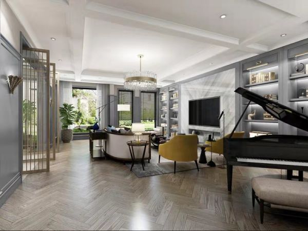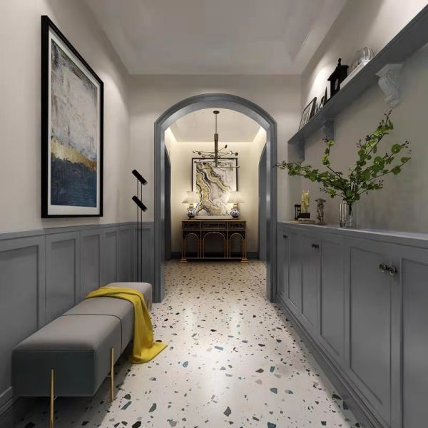 平静的生活中偶得的智慧,似禅坐时心中闪现的一束光。该案本着"崇尚自由,追求完美"入户玄关用彩色水磨石结合蓝灰色墙板,给人以自然浪漫的感觉,同时更显屋主人的气质不俗。客餐厅以原木色,大肌理地板,称一爵士白电视背景墙,不仅突显主人的文化气息也呼应玄关的自然格调。设计师希望以整体的设计搭配软装给主人以静谧的生活空间,进身繁华闹市,退居自然恬静之所。