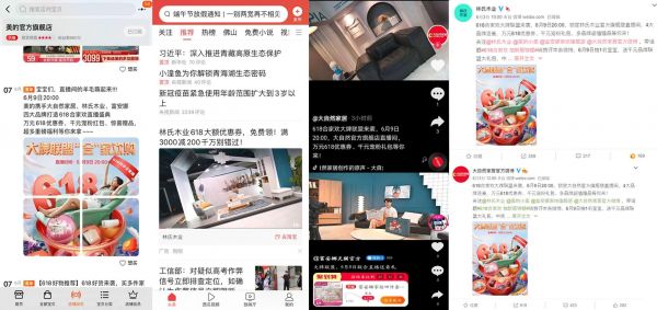 为进一步提升活动在618期间的曝光量,4大品牌联盟在微博社交平台打造#618合家欢 抽新居锦鲤#有奖互动话题,刺激粉丝用户参与积极性。为品牌联盟直播活动造势预热引发关注,并在淘内、小红书、头条等全域渠道种草营销将舆论声量推向高潮。