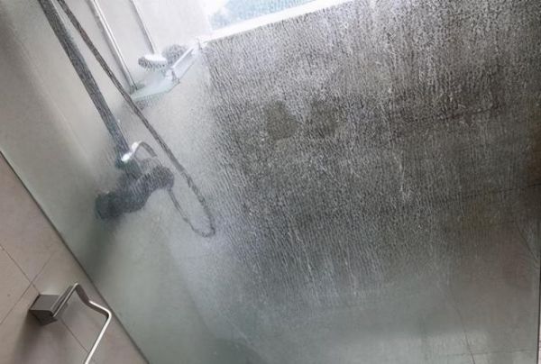 我们卫生间里面的五金用品和玻璃浴室,都安装得很漂亮,但是时间长了,就会在五金用品和玻璃门的表面形成很多白白的水垢,不仅影响透光,也不好看,显得女主人邋遢。