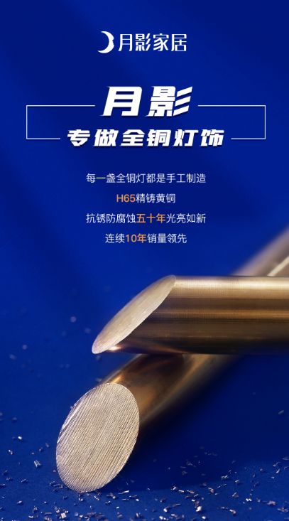 月影家居作为装饰照明的领军品牌,始终坚持用好铜做好灯,1999元全屋铜灯套餐甄选国标H65全铜,防腐耐锈,耐用50年。每一盏月影全铜艺术吊灯的诞生都需要历经锻化、造型、打磨、抛光……等72道繁琐的手工工序以及130h的严苛质检。月影家居以高标准和严要求的态度,打造出具有冠军品质的全铜灯饰。