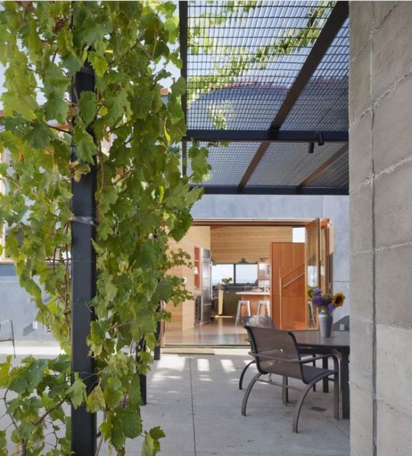 不同以往的玻璃或者遮阳棚封顶,这种凉棚顶部是直接用的钢丝网。做法真的很新奇,这样的做法到底能带来哪些好处呢?