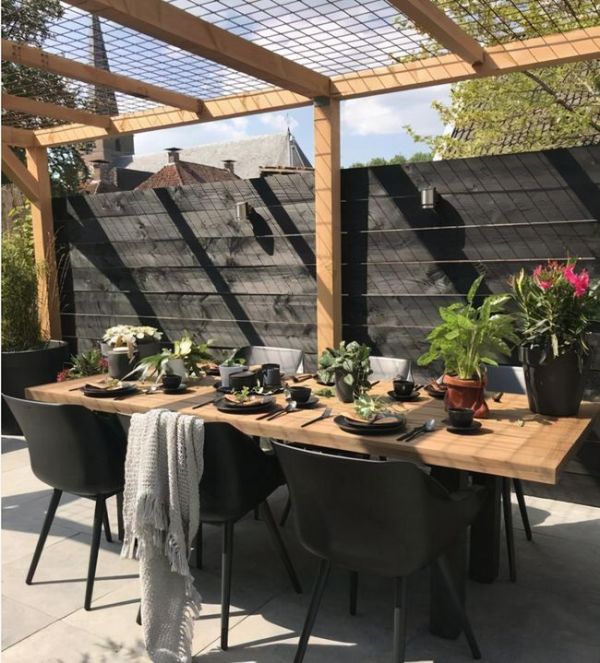 搭设这样的遮阳棚通常旁边都会预留出位置,用于栽种一些爬藤系植物,例如紫藤月季。植物长大起来,就可以顺着爬藤上去,将整个的顶部布满,夏天季节不仅能起到很好的遮阳作用,坐在地下还可以闻到花香,格外的舒适。这样的,可比挂什么遮阳布更为美观,省钱。