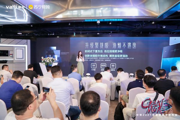 发布会以“Create More”为主题,发布了全新的魔尔套系CLASSIC厨电产品聚拢吸烟机J6019、鸳鸯灶BZ8352B,以及Wi-Fi增压瀑布浴零冷水热水器16-JH7i。华帝以时尚、智能、健康等产品优势,助力中国厨房焕新升级,并携手苏宁全面开启618联合营销风暴。