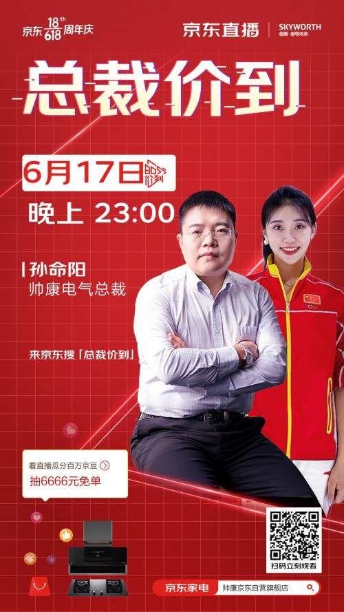 帅康成立以来始终坚持为广大消费者提供安全健康、智慧便捷的厨房电器,随着时代的进步与发展,帅康的产品也不断地更新迭代。此次617帅康总裁直播“BOSS价到,冠军助威”,将由帅康总裁孙命阳携手冠军体验官一起为大家展示帅康产品的智慧便捷与科技创新,带领大家共同迈向“新智所向,‘帅’性而为”的新厨电时代。