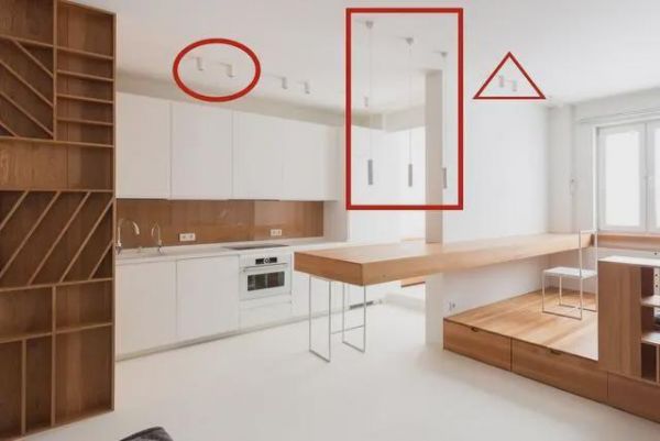 再说说这灯具布置的问题,尽管4个室内空间聚合在一块,但每个功能的灯具也是必须独立去布置设计构思的。厨房和书房能够安装上筒灯,餐厅能够安装吊灯,实现局部照明,实用价值和装饰艺术兼顾。