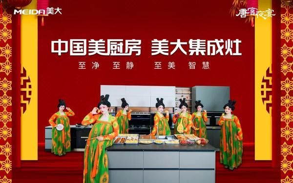 《唐宫夜宴》作为美大集成灶-中国美厨房推荐团,将至净、至静、至美、智慧的中国美厨房理念以精美的文化艺术形式呈现,充分展现美大的品牌历史和文化积淀的深厚,赋能创新升级。同时,在“中国民族伟大复兴”的大潮中,“国潮”“大唐文化”盛行的当下,全民弘扬传统文化,美大与《唐宫夜宴》的品牌合作也是顺应时代潮流,通过一部惊艳的穿越大戏,直击流行,拉近与用户的距离,增强互动,强强联手赢得更多消费者的品牌好感与文化喜爱,掀起厨电行业文化传播新潮流。