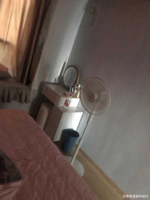 主卧可以说,即使放下窗帘的效果,室内光线还是蛮不错的。床上四件套和床头背景墙都是粉红色,特别有种少女心的感觉。右边放着网红款的梳妆台,可以非常方便女屋主使用,真心不错。