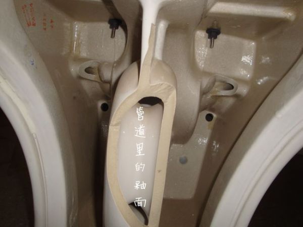 马桶摆在那,能够一眼看到的地方,基本上都有釉面。但是只有一些还不够,还有一个非常关键的地方,也需要施釉,那就是排水口。