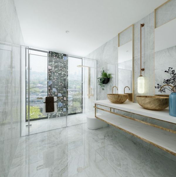 卫浴空间上讲究层次感,墙地一体化的设计,在变与不变中完美融合了中式的韵味和风情,也营造了静谧美好的气氛。