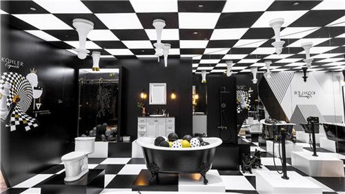 在设计领域,色彩的展现历来是高深的艺术,亦如简单却极致的黑色、白色与金色。本次科勒精选的展台运用黑与白对立的视觉冲突,表达出科勒对敢拓新界的坚持与立场,制造了强烈的色调碰撞。空间上则用极致的内外反差,展现出科勒别具一格的产品个性。外部严谨有张力,内部亲和自然,参观者随着不同情境的切换,深刻感知科勒产品的叙事能力。