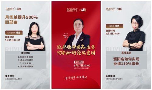 2021年即将过半,今年的业绩KPI完成情况如何?近期,窗帘十大品牌如鱼得水溢彩的精英经销商们接连开展了热门直播活动,详细介绍了搞业绩攻略,引起了业内火速围观:5月7日,舟山店销售高手王飞,带来《溢彩墙布爆品运营 Y04如何突出重围》课程;5月19日,汕头经销商姚总,带来《月签单提升500%四部曲》课程,对窗帘店面形象颜值、如鱼得水成品试挂基因、主动营销和坚持售后服务四大方面进行了详细阐述;6月2日,濮阳店田总,带来主题为《濮阳店如何实现业绩110%增长》的直播,满满干货,吸引了大批观众涌入直播间。