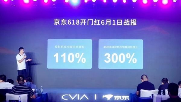 让我们回到本次CSPC2021首届中国智能投影高峰论坛,在论坛发言中的一项数据也让我们值得共同关注,在今年2021年度,京东618开门红6月1日战报的总结数据,其中投影机成交额同比增长110%,4K超高清投影机销量同比增长300%。将这个数字对比到当贝投影,当贝投影在今年2021年度618开门红,也有一份“超燃”成绩单,增速达到了350%,高于大盘整体数据,可以说是名副其实的增速冠军。