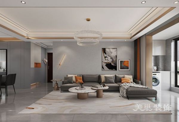 今天给大家介绍的是一套119平三室两厅现代轻奢风格装修,业主是一家四口,一儿一女,生活简单幸福。两个人平时上班比较忙,喜欢简洁的线条、轻奢质感和灰色系,希望拥有一个舒适温馨又时尚的生活环境。整个家的装修低调又有质感,设计师将主色调定为灰色,局部搭配橘色点缀,让空间灵动又不会太过招摇,营造出温润优雅又高级的氛围。一起去看看这套三居室装修究竟如何呢?