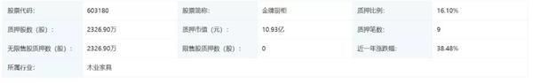 企查查显示,2017年至今,金牌厨柜共有股权质押30次,质押股数为2326.90万股,质押比例为16.10%,质押市值为10.93亿元。