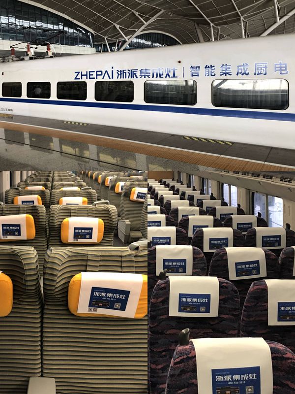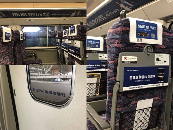 当你登上浙派集成灶冠名高铁起,车身、上车门、头片、桌贴、海报、桌板创意贴、LED显示屏,列车广播、车厢彩贴等将全面展示浙派品牌形象!配有车厢LED屏滚动播出,列车到站高铁温馨提醒广播让你无论坐、立、行、视、听,都能感受到浙派品牌文化!