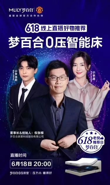 而梦百合董事长倪张根,也是家居行业受关注度颇高的一位董事长,很多人戏称他是“A股最任性董事长”。作为梦百合的创始人,倪张根一直以“提高人类的深度睡眠”为己任,继去年618惊喜现身直播间后,今年老倪如约而至,6月18日20点,与李晟&李佳航夫妇共同亮相直播间,给大家带来系列0压好物。