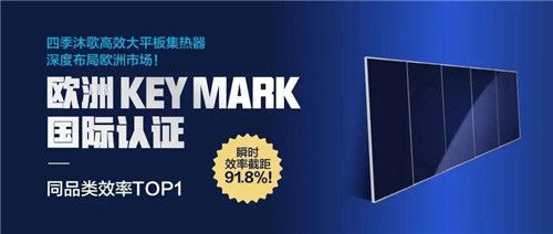在国际上,四季沐歌也屡获认证。在2021年初,四季沐歌高效大平板集热器就通过了欧洲KeyMark国际认证检测,成功拿到了产品通往欧洲的“绿色通行证”。四季沐歌还在西藏建成大型平板太阳能集热器生产基地以及超大平板自动化生产线,来为全球用户提供更多元的清洁能源解决方案,将中国技术应用到更多的国家和地区。