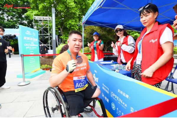 赛道上,一位手推轮椅参赛的选手,格外引人注目。他用充满力量的双臂,推动着轮椅极速前进,拼搏到底的精神令观赛者折服。“因为热爱,所以坚持”,董战军是户外运动赛事的常客,他爱运动不仅是因为能锻炼身体,还能放松身心欣赏风景。他说本次欧亚达徒步赛赛事服务非常好,好的参赛体验才能出好的成绩。