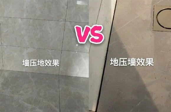 地压墙顾名思义就是先贴墙砖后贴地砖,等墙砖铺好后地砖再压着墙砖贴好。这种方法比墙压地要方便很多,这也是为什么现在装修师傅想选地压墙铺设。