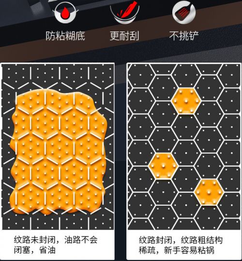 康巴赫第五代抗菌蜂窝锅采用经典开放式的蜂窝PRO,增加油的流动性延展性,更大限度地提升了不粘效果,清洗也更便捷,用普通的抹布一抹就完全干净了。全新设计的精雕纹路,视觉上达到裸眼3D的效果,充满了未来科技感。