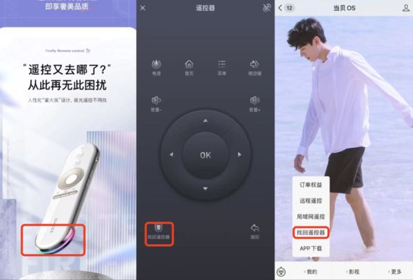 这两款投影仪都有遥控器找回功能,这点对于老是乱丢遥控器的朋友来说比较友好,但仔细观察了以后,小编发现,知麻投影仪的遥控器找回是采用了夜光技术,在投影仪的尾部设计了一个夜光条,通过颜色来让你找到。而当贝C2的遥控器找回是通过当贝遥控APP和当贝OS的公众号帮你找回。