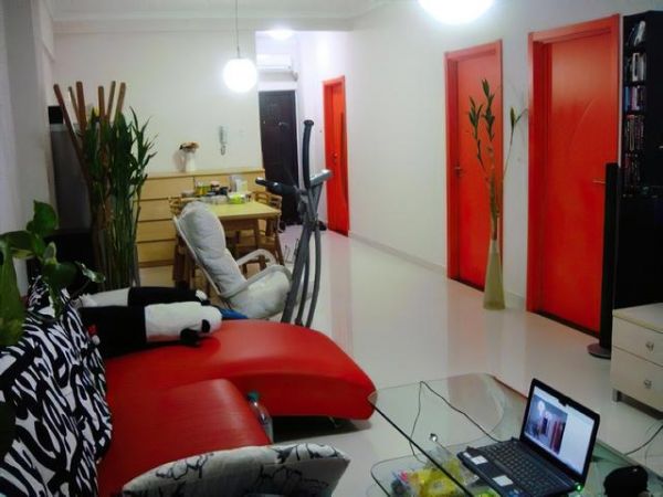 红色的室内门看起来就让人感觉很不正常,如果是晚上的话,胆小的人估计会怀疑有什么东西会冲出来,沙发也是以红色为主,这颜色设计真是太“喜庆”了,给人一种怪怪的感觉,网友老公竟然说很有艺术气息。