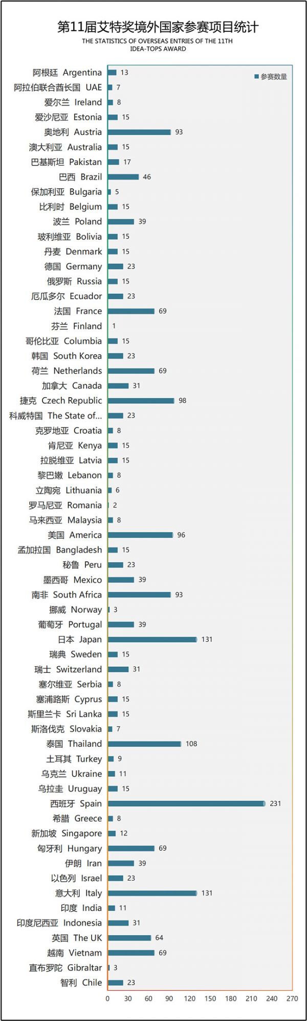 ▲第11届艾特奖境外国家参赛项目统计图