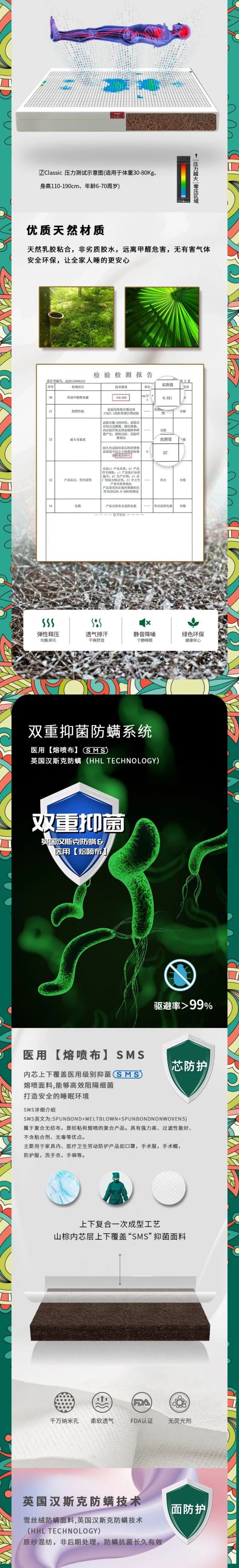 面料方面,大自然梦境 Z-classic双重抑菌防螨系统,采用医用熔喷布和英国汉斯防螨技术,能够高效阻隔和防止细菌的滋生。
