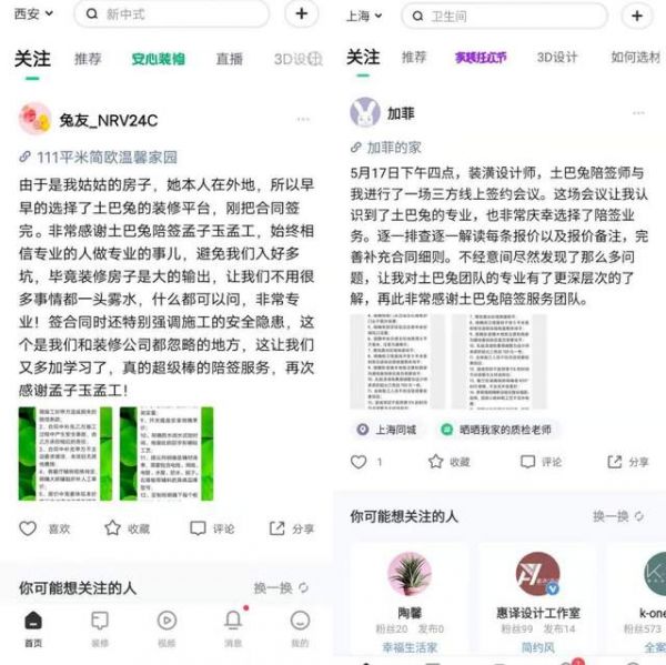 据孟子玉介绍,陪签的客户一般都是朋友推荐或者是从网上看到其他业主装修日记之后找过来的,每次陪签结束后,土巴兔陪签师都给提供一份完整的陪签报告,业主也会填写一份陪签心得。
