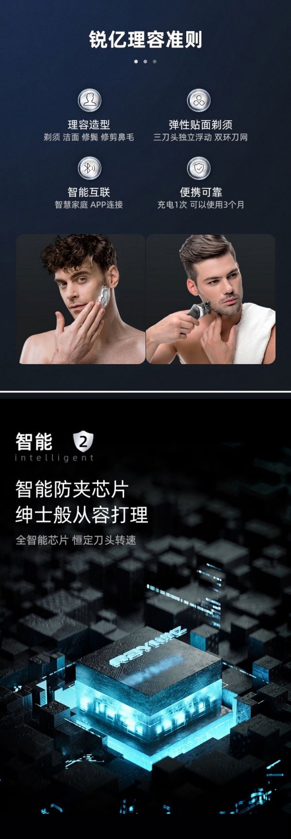 锐亿智能科技:一直专注于剃须刀及个人护理电器研发、制造及销售。现已成为一家以“自主研发”、“精工制造”和“品牌运营”为三大核心竞争力的高科研制造企业。作为一家年轻、时尚、充满活力的剃须刀品牌,紧跟时代步伐,为消费者创造美好智能生活。